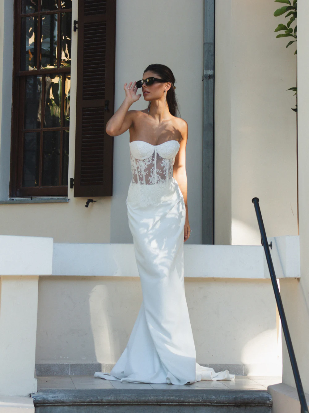 Exquisite ivory lace over a luxurious ivory base, this fully boned corset promises a perfectly cinched silhouette that flatters every body: A true Galia Lahav staple.