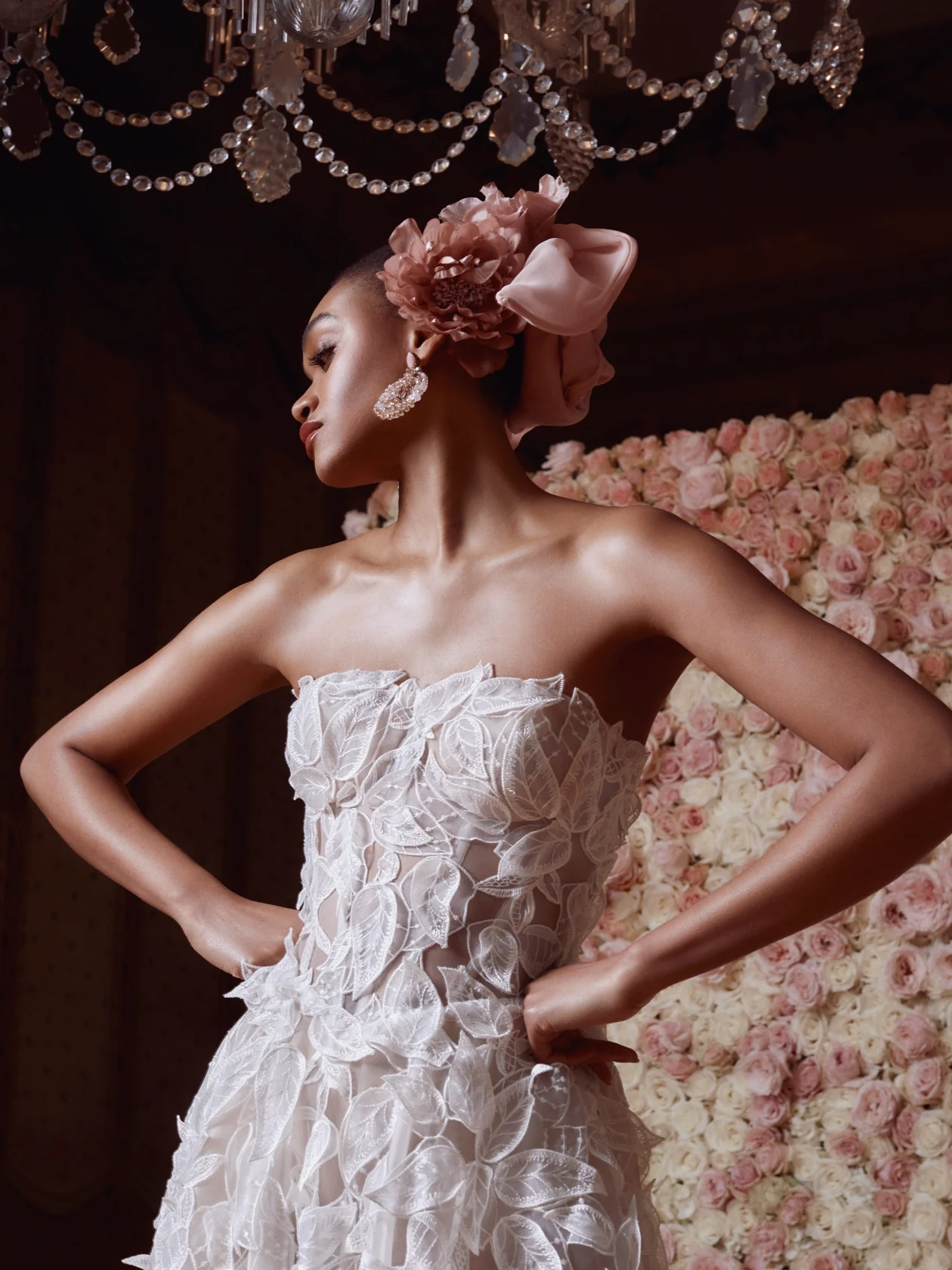 “Breeze” through your special day in this strapless ball gown that feels like summer elegance. Its grand silhouette flows into a long, sweeping train that gathers beautifully with every move. The lace 3D leaf pattern and cut-out design adds a subtle wink to what's underneath.